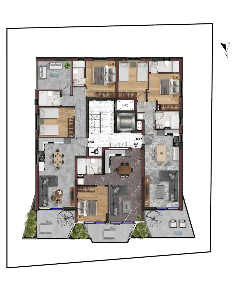 ISABEL Residence consists of thoughtfully designed 1- and 2-bedroom apartments, offering bright layouts and comfortable living spaces. Every home is crafted to achieve the perfect balance of elegance and functionality, featuring: