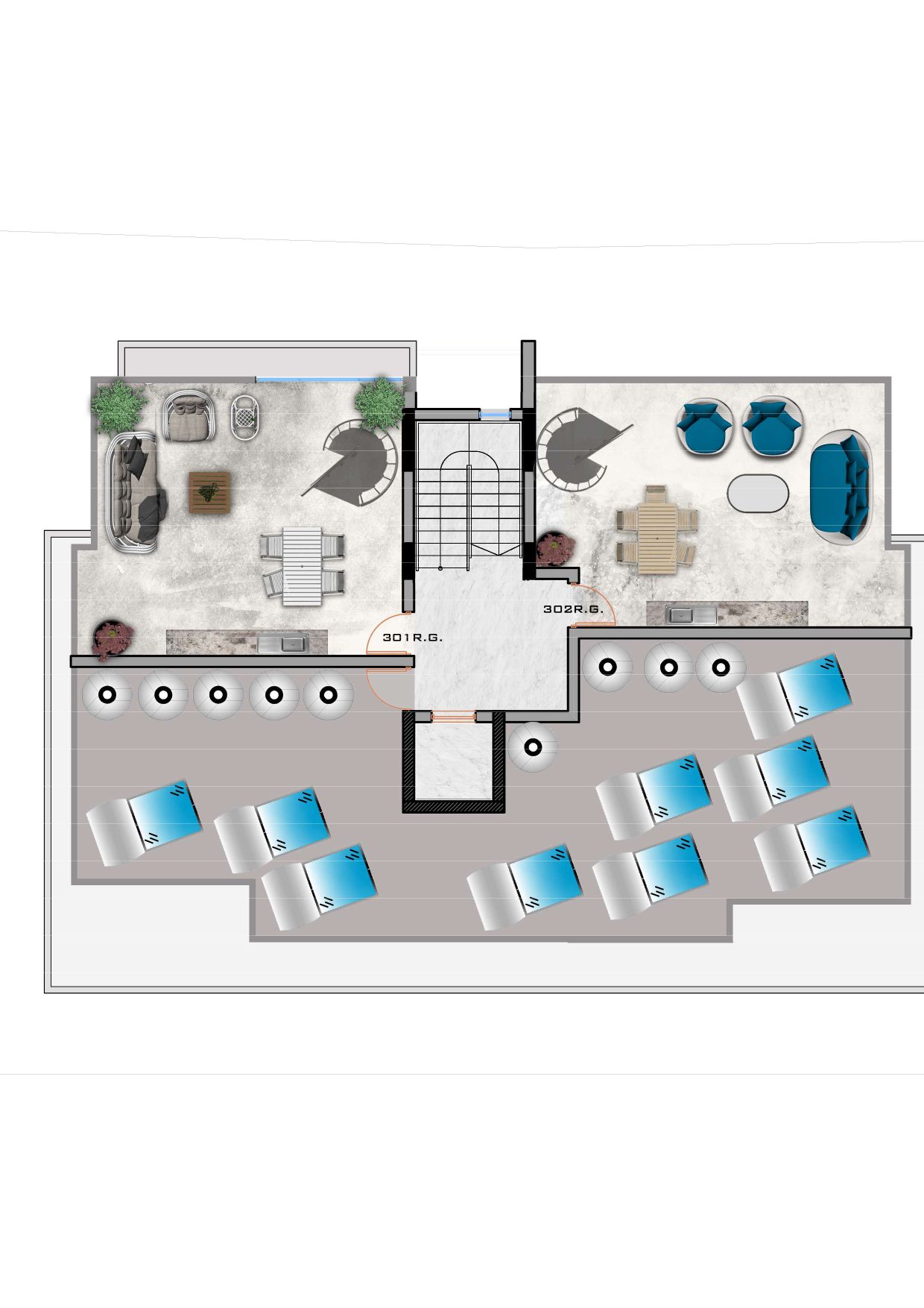 The project boasts Six two-bedroom apartments and Three one-bedroom apartments - all with spacious and contemporary living areas. There are three apartments per floor - ensuring optimum privacy for potential buyers. Top floor apartments benefit from individual private and luxury roof-gardens with amazing views of the lovely neighborhood and the sea. Each apartment from the first to third floor has one parking bay and a storage room.